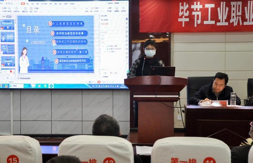 副院長黃河就《畢節(jié)工業(yè)職業(yè)技術(shù)學院2020年開學工作方案》《畢節(jié)工業(yè)職業(yè)技術(shù)學院新冠疫情防控工作方案》《畢節(jié)工業(yè)職業(yè)技術(shù)學院新冠疫情防控應(yīng)急預案》進行解讀,要求加強組織管理和統(tǒng)籌調(diào)度,建立健全上下一體聯(lián)動機制,明確職責分工,確保新學期開學疫情防控策略和應(yīng)急處置措施扎實有效實施。