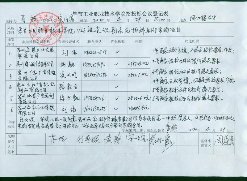畢節(jié)工業(yè)職業(yè)技術(shù)學(xué)院VIS視覺識(shí)別系統(tǒng)物料制作采購(gòu)項(xiàng)目第二中標(biāo)候選人順延為第一中標(biāo)候選人的公告