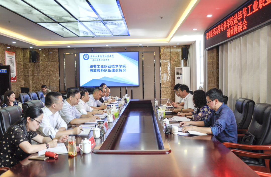 7月2日下午,畢節(jié)醫(yī)學高等??茖W校黨委書記顏勇,黨委委員副校長黎梅,黨委委員副校長王景舟,思政部副主任李海龍一行到我院就思政教師隊伍建設情況進行交流座談。學院黨委書記李涌主持座談會,院長邱國援及院領導付善華、陳穎、吳家文、黃河、黃文碧出席座談會,辦公室負責人周軍,馬克思主義教學部負責人閻潤萍,宣傳統(tǒng)戰(zhàn)部負責人朱鵬及部分思政教師參加會議。