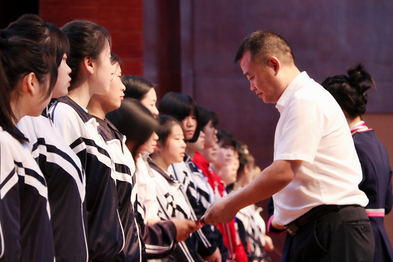 (學(xué)生向?qū)W校領(lǐng)導(dǎo)及畢業(yè)班班主任獻花)