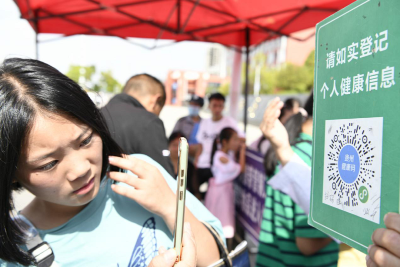 (新生在校門口掃描健康碼,憑綠碼進(jìn)入學(xué)校)