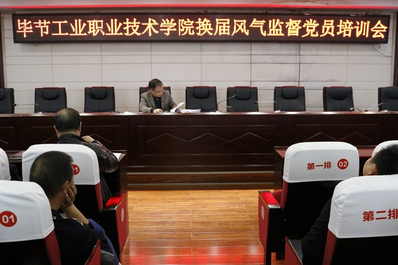 11月17日下午,畢節(jié)工業(yè)職業(yè)技術(shù)學(xué)院換屆風(fēng)氣監(jiān)督黨員培訓(xùn)會在九樓會議室召開,副縣級以上領(lǐng)導(dǎo)干部及全體黨員參加會議。