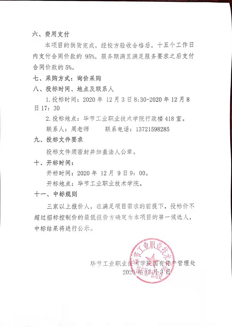 畢節(jié)工業(yè)職業(yè)技術(shù)學(xué)院監(jiān)控維修采購項(xiàng)目中標(biāo)公告