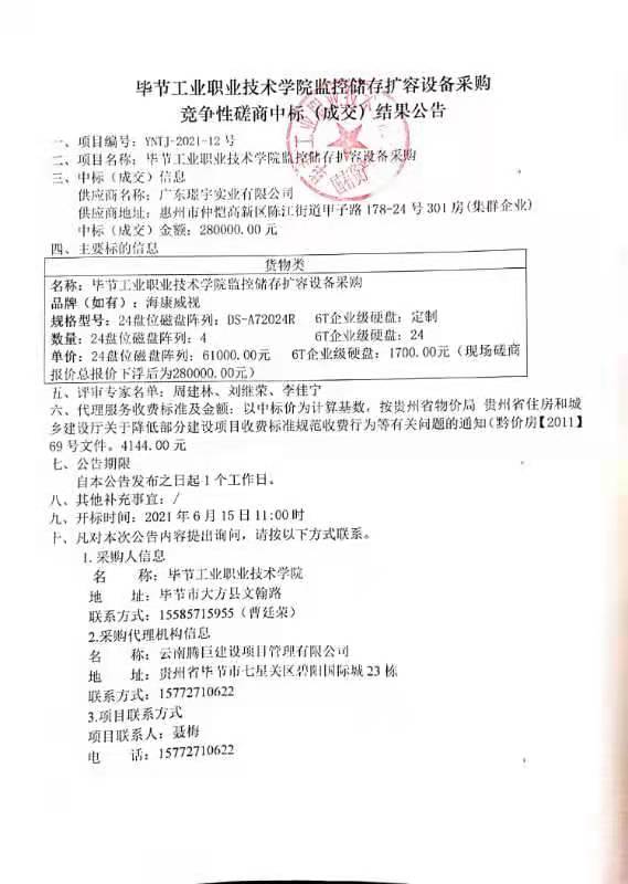 畢節(jié)工業(yè)職業(yè)技術(shù)學(xué)院監(jiān)控儲(chǔ)存擴(kuò)容設(shè)備采購成交公告