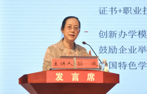 ▲中國教育科學(xué)研究院職業(yè)教育與繼續(xù)教育研究所所長孫誠作“新時(shí)期職業(yè)教育發(fā)展的時(shí)代背景、內(nèi)涵要義與建設(shè)路徑”專題講座