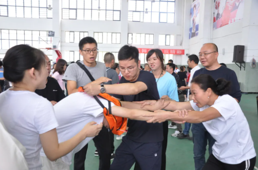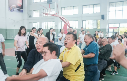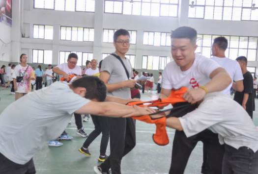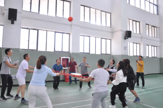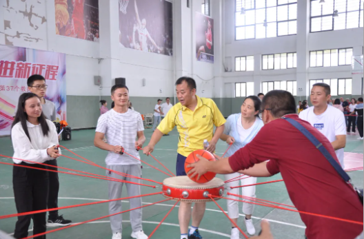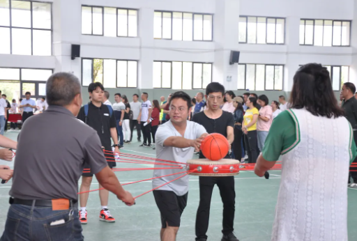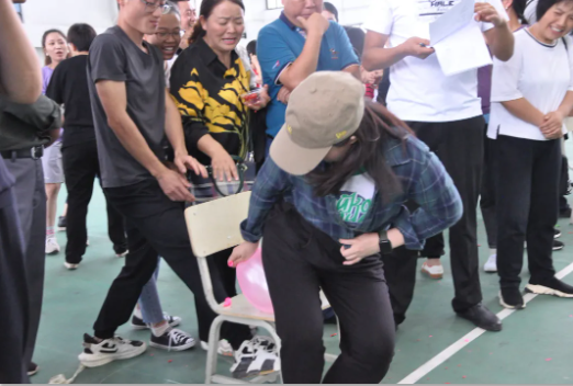 活動(dòng)共設(shè)置了連環(huán)穿衣、同心鼓、坐爆氣球和拔河四個(gè)項(xiàng)目,參與教師分為八個(gè)小組進(jìn)行比拼?,F(xiàn)場笑聲不斷,充滿了熱鬧的氣氛,歡呼聲、加油聲、吶喊聲此起彼伏。