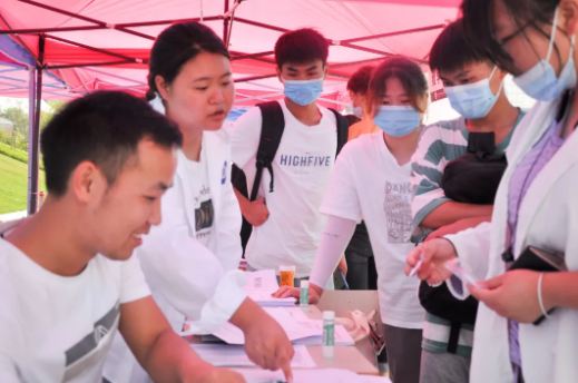 細(xì)心指導(dǎo)著新生填寫入學(xué)資料