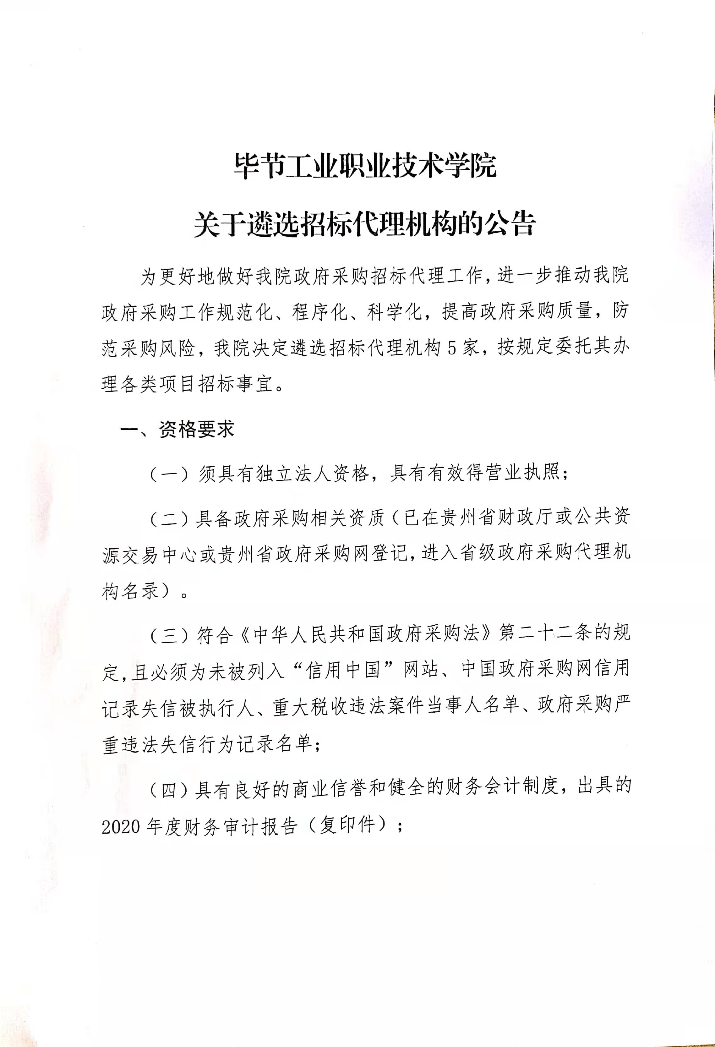 畢節(jié)工業(yè)職業(yè)技術(shù)學(xué)院關(guān)于遴選招標代理機構(gòu)的公告