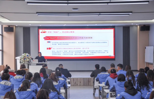 12月1日上午,學院黨委副書記、院長邱國援在拓海學院會議室,為社會服務系師生作《學好“四史”·踐行使命》專題宣講。教師和學生代表100余人參加學習。