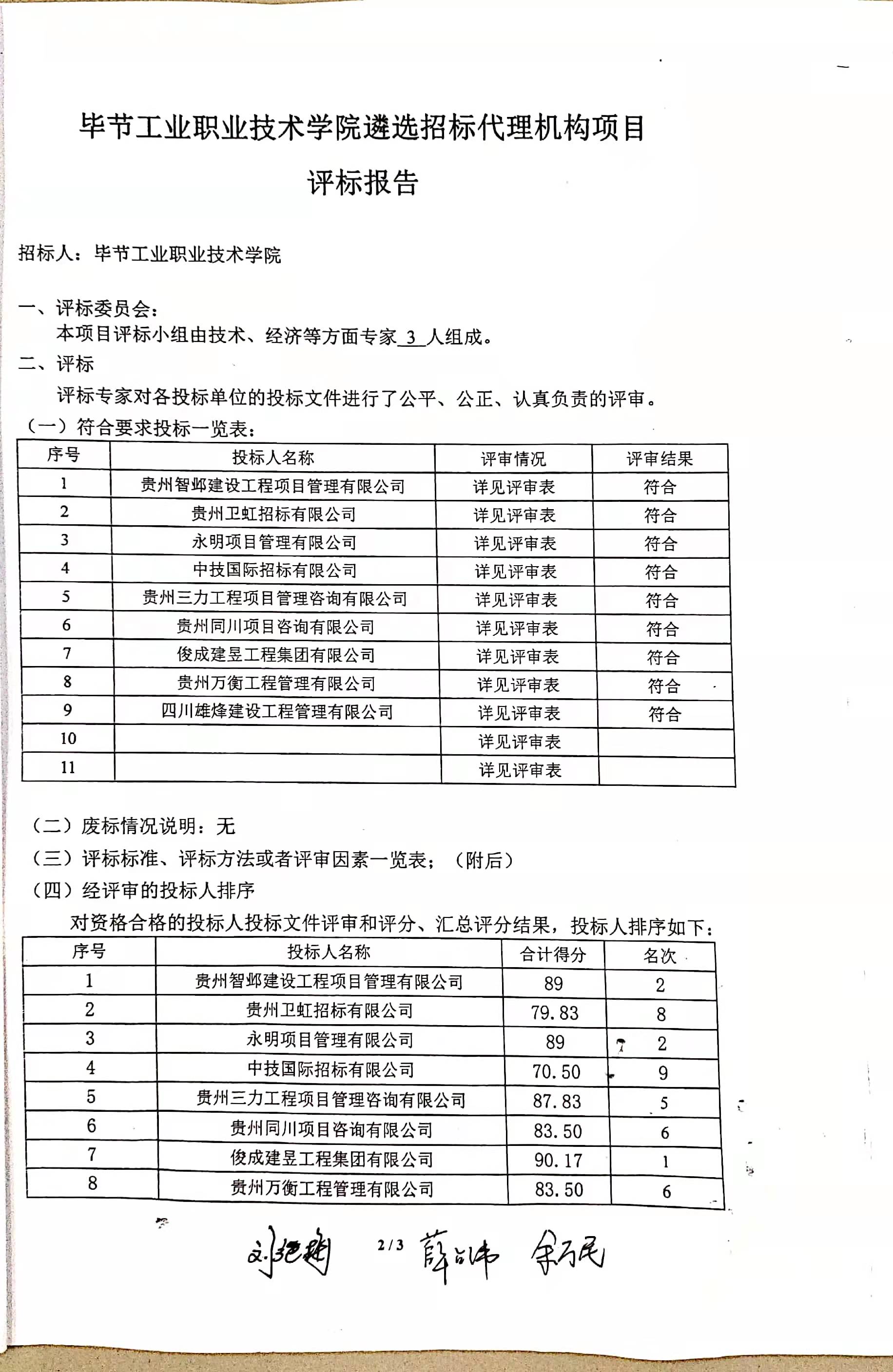 畢節(jié)工業(yè)職業(yè)技術(shù)學(xué)院遴選招標(biāo)代理機(jī)構(gòu)項目評標(biāo)報告