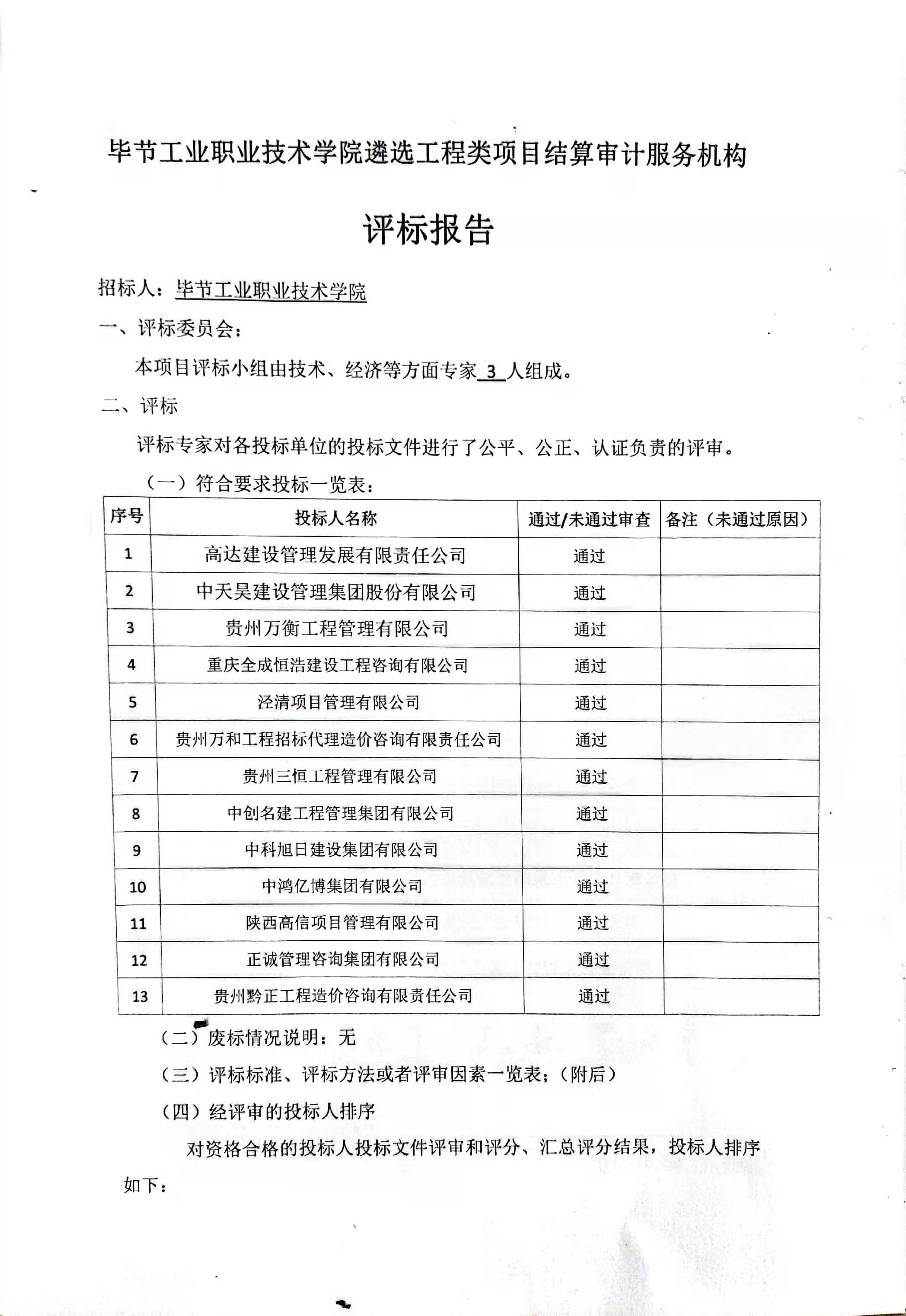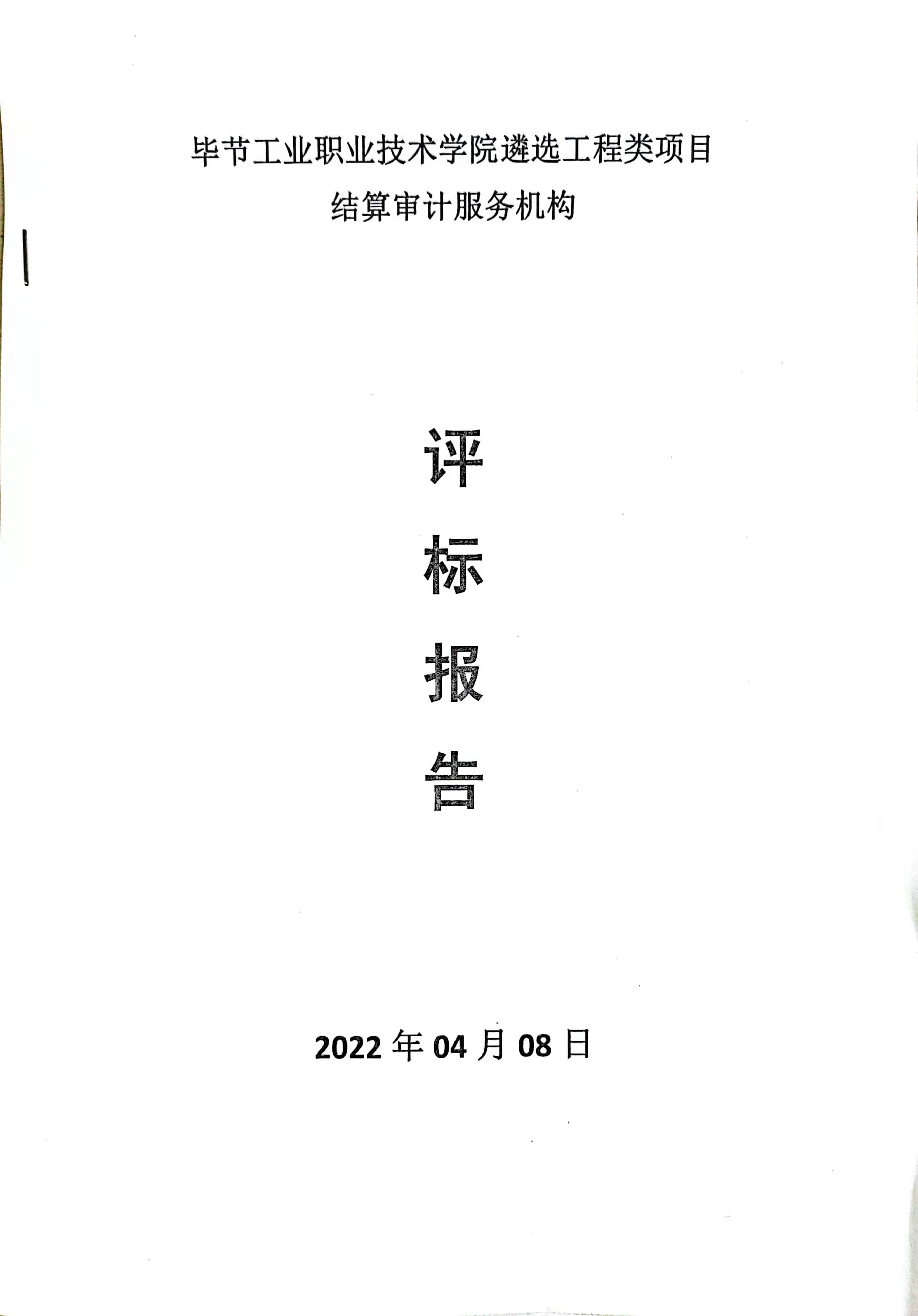 畢節(jié)工業(yè)職業(yè)技術(shù)學(xué)院遴選工程類(lèi)項(xiàng)目結(jié)算審計(jì)服務(wù)機(jī)構(gòu)評(píng)價(jià)報(bào)告