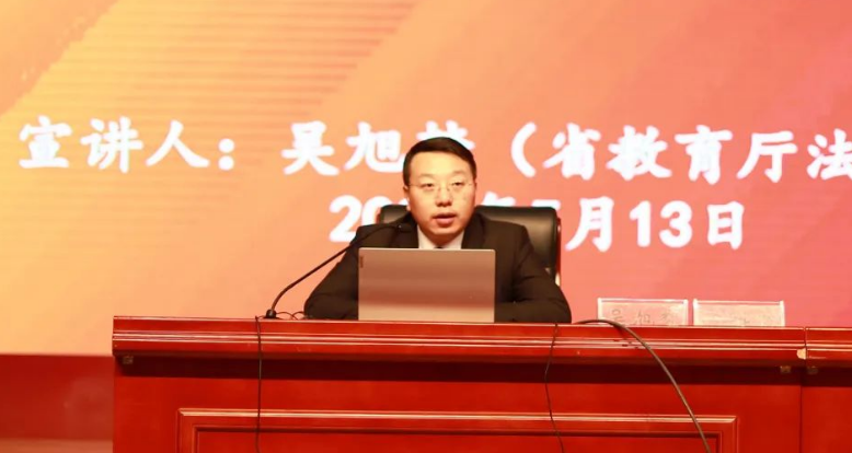 5月13日下午,畢節(jié)工業(yè)職業(yè)技術(shù)學(xué)院邀請(qǐng)省教育廳法律顧問吳旭夢(mèng)博士在學(xué)院會(huì)議中心開展習(xí)近平法治思想專題宣講,黨委委員、宣傳統(tǒng)戰(zhàn)部部長余斌主持宣講,學(xué)院300余名師生參加學(xué)習(xí)。