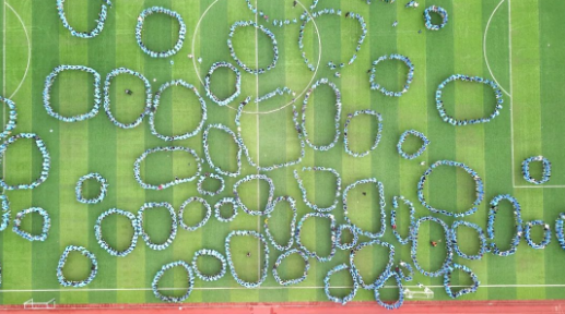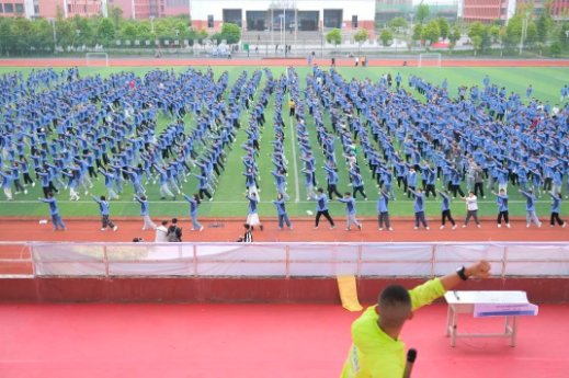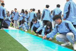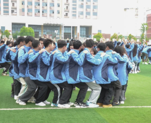 挑戰(zhàn)No.1以班級為單位把同學(xué)們分為多個(gè)小組,圍繞成圈,通過不斷優(yōu)化分工,在150秒內(nèi)一共完成3個(gè)挑戰(zhàn)項(xiàng)目。挑戰(zhàn)第一輪,成員跟隨老師的口號做出相應(yīng)動作并念出口號,最后完成疊羅漢的動作;挑戰(zhàn)第二輪,在第一輪的基礎(chǔ)上完成疊羅漢向前走八步的動作;挑戰(zhàn)第三輪,從每個(gè)組當(dāng)中挑出最強(qiáng)壯的成員,在每個(gè)組準(zhǔn)備完成后向每個(gè)組進(jìn)行撞擊,最終沒被撞散的組獲勝。