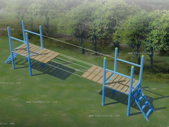 智過(guò)瀘定橋拓展培訓(xùn)項(xiàng)目描述:模擬當(dāng)年紅軍"飛奪瀘定橋"的情景,站在高空處,憑借人體自我平衡,跨過(guò)一段相隔半米有一個(gè)木板的軟"橋"。