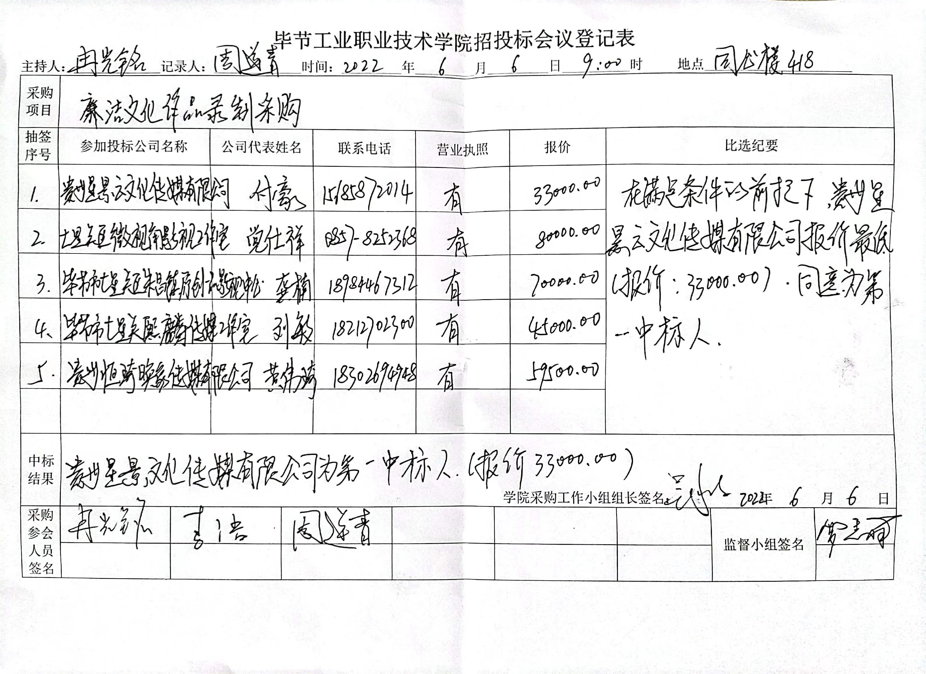 畢節(jié)工業(yè)職業(yè)技術(shù)學(xué)院 廉潔文化作品錄制采購(gòu) 招投標(biāo)中標(biāo)公告