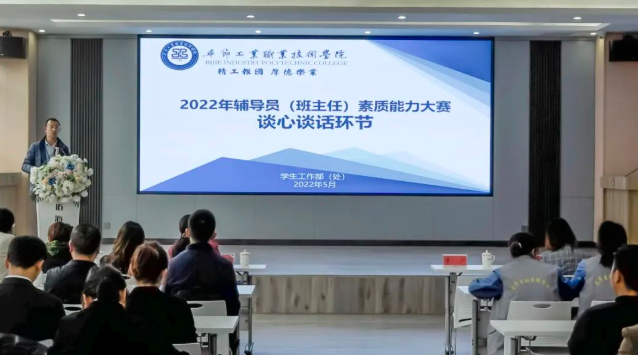 本屆輔導(dǎo)員(班主任)素質(zhì)能力大賽對標國賽新賽制,分為基礎(chǔ)知識測試、案例研討、談心談話三個項目,基礎(chǔ)知識測試重點考察輔導(dǎo)員(班主任)的理論素養(yǎng)和業(yè)務(wù)知識;案例研討主要考察輔導(dǎo)員(班主任)綜合運用理論分析問題、研判問題、解決問題的能力;談心談話主要考察輔導(dǎo)員(班主任)對學(xué)生特征、學(xué)生成長成才規(guī)律的了解把握程度,對學(xué)生的教育引導(dǎo)能力、解決理論困惑和實際問題的能力。