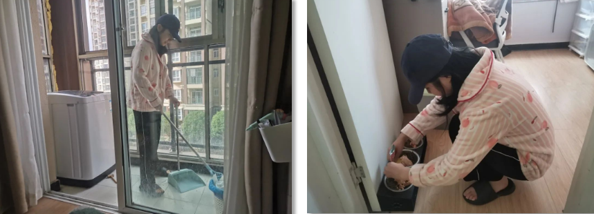 實行靜默管控以來,機電工程系老師陳榮雪,每天忙碌于給在校進行疫情防控工作的老師們收拾屋子,整理家務(wù)。掃地、澆花、倒垃圾、喂寵物,甚至是熬豬油、洗衣服……把老師們家里的一切打理得井井有條。