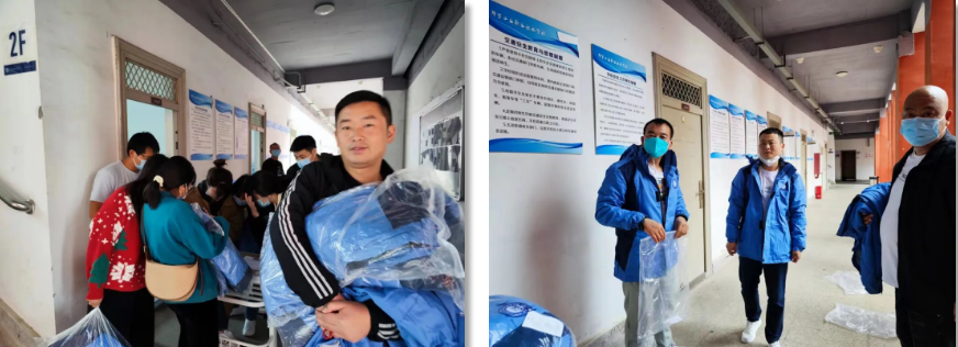 當實施靜默管理后,我院80余名教職工連夜趕回學校,他們勇毅逆行、不畏風險,義無反顧地奮戰(zhàn)在抗擊疫情的一線,他們不僅為全院師生帶來感動,更為疫情防控注入必勝的決心。由于時間緊、任務(wù)重,他們大多數(shù)來得匆忙,恰遇氣溫驟降,教職工們著裝單薄、無換洗衣物便成了大問題。桐城市創(chuàng)意服裝有限公司得知情況后,立即決定將為22級新生準備的校服中拿出沖鋒衣80余件無償捐獻給學院抗疫一線教職工保暖所用。