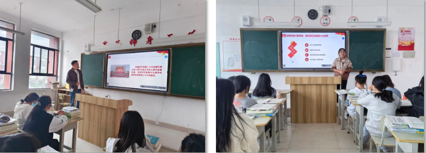 (楊興老師、李玉菊老師為學(xué)生宣講黨的二十大精神)