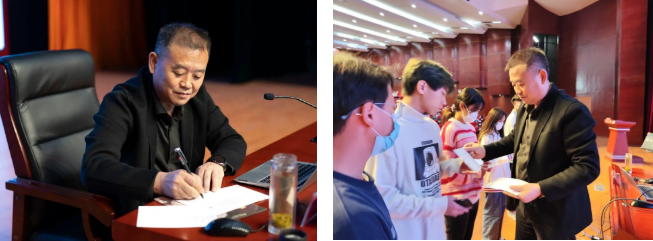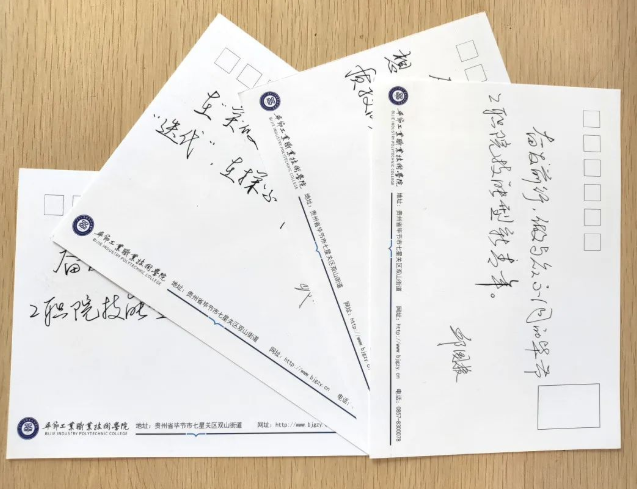 “祝你生日快樂……”隨著背景音樂響起,過生日的同學(xué)們帶著驚喜的笑容走上講臺(tái),享受著這份專屬的溫馨,現(xiàn)場(chǎng)氣氛熱烈,在場(chǎng)同學(xué)們熱情地送上陣陣掌聲與歡呼?!安回?fù)韶華、砥礪前行,做有理想、有信念、有擔(dān)當(dāng)?shù)男聲r(shí)代高素質(zhì)技能人才”“奮發(fā)前行,做與眾不同的畢節(jié)工職院技能型新青年”……一句句寫在明信片上的青春寄語既是院長(zhǎng)對(duì)新同學(xué)的期待,更是院長(zhǎng)對(duì)新同學(xué)特別生日的別樣祝福。 在16位同學(xué)的生日“大禮包”中,一張親筆簽名的青春寄語明信片成為最有意義的“生日祝?!?。明信片的正面展現(xiàn)了校園內(nèi)一年四季的美景與青春芳華,表達(dá)了學(xué)院對(duì)新同學(xué)的歡迎與祝福。而在明信片的背面,是一句句手寫的青春寄語與院長(zhǎng)的親筆簽名,將思政融于校園生活,用生動(dòng)具體的祝福引導(dǎo)新同學(xué)扣好人生的“第一??圩印?,引導(dǎo)同學(xué)們珍惜時(shí)光、不負(fù)韶華、不負(fù)青春。這場(chǎng)別樣的“開學(xué)第一課”,讓同學(xué)們剛進(jìn)入學(xué)校就感受到了畢節(jié)工職院這個(gè)大家庭的溫暖。 機(jī)電工程系學(xué)生高安會(huì)說:“今天是一個(gè)特別的日子,我19歲了,在沒有家人的陪伴下過生日,心里未免有些許失落,但在“開學(xué)第一課”看到我跟其他同學(xué)的姓名出現(xiàn)在會(huì)場(chǎng)的屏幕上,緊接著邱院長(zhǎng)和同學(xué)為我們送上生日的祝福,真是既驚喜又感動(dòng),對(duì)我來說這是19年以來最為難忘的一次生日。作為一名大學(xué)生,我會(huì)時(shí)刻提醒自己,珍惜在大學(xué)生活的每一分每一秒,不讓時(shí)光虛度。” 信息工程學(xué)生廖英杰說:“報(bào)到當(dāng)天就真切地感受到了老師、同學(xué)們的熱情,在今天這個(gè)特別的日子,我還收到了學(xué)校領(lǐng)導(dǎo)親手寫的明信片,這份入學(xué)‘禮物’讓我們特別高興,也感到特別溫馨?!?/p> 土木工程系同學(xué)歐宇鵬說:“今天收到的禮物對(duì)我來說有著很特別的意義。里面飽含著學(xué)校和院長(zhǎng)對(duì)我們的期望,我一定會(huì)努力學(xué)習(xí)、不斷提升自己的能力,發(fā)揮自己的價(jià)值,做一個(gè)對(duì)社會(huì)有用的人?!?/p>