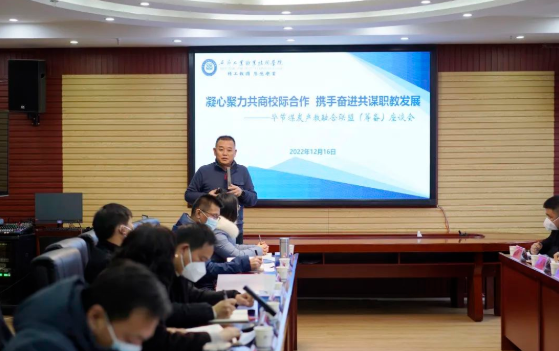 畢節(jié)市中華職業(yè)教育社專職副主任夏青對成立畢節(jié)煤炭產(chǎn)教融合聯(lián)盟作指導(dǎo)講話。