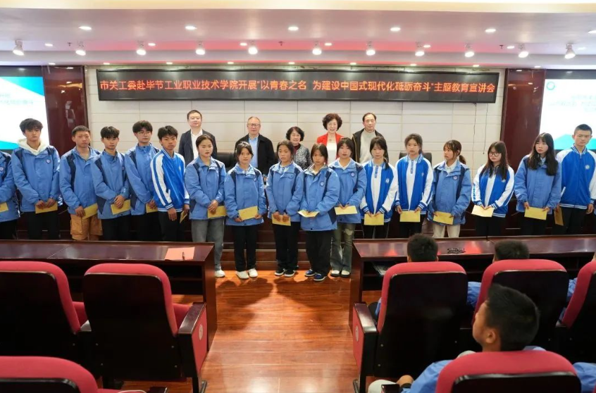 4月28日,畢節(jié)市關(guān)工委主任周長琦、副主任杜娟、謝正發(fā)、潘軍偉一行赴我院開展主題教育宣講并實地調(diào)研我院辦學情況。學院黨委委員、副院長吳家文,黨委委員、組織部長申開谷,工會、婦聯(lián)主席李淑文及相關(guān)部門人員陪同調(diào)研。宣講會由吳家文主持,學院師生代表200余人聆聽宣講。