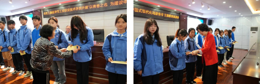 關(guān)工委領(lǐng)導一行實地考察調(diào)研了校園環(huán)境、文化建設(shè)、校企合作實訓基地、心理健康教育與咨詢中心并詳細了解了學院辦學情況,對學院現(xiàn)階段各項工作取得的成效給予了充分肯定。 宣講會上,潘軍偉以“以青春之名,為建設(shè)中國式現(xiàn)代化砥礪奮斗”為題,從“什么是中國式現(xiàn)代化”、“中國式現(xiàn)代化理論走過的歷程”、“中國式現(xiàn)代化關(guān)鍵是什么”、“如何推進中國式現(xiàn)代化”、“以青春之名,為建設(shè)中國式現(xiàn)代化砥礪奮斗”五個方面,帶領(lǐng)工職院師生從歷史發(fā)展脈絡(luò)的角度出發(fā),全面回顧了近代以來中華民族艱辛的探索和復興之路。深刻闡釋了中國式現(xiàn)代化是中國共產(chǎn)黨和中國人民長期實踐探索的成果,是對中國特色社會主義道路的繼承與發(fā)展,拓展了發(fā)展中國家走向現(xiàn)代化的途徑,指明了構(gòu)建人類命運共同體發(fā)展方向。講座具有很強的理論性、針對性和指導性,對與會師生學習理解中國式現(xiàn)代化,進一步堅定政治立場、樹立正確的人生觀價值觀、勇?lián)褡鍙团d重任具有深刻的啟發(fā)和引導意義。 潘軍偉強調(diào),中國式現(xiàn)代化為廣大青年提供了廣闊的舞臺,新時代技能青年要堅持黨的領(lǐng)導,牢記習近平總書記的殷切囑托,傳承“五四”精神,既要有遠大的理想和抱負,又要有腳踏實地的實干精神。要認真學習專業(yè)技能,練就過硬的本領(lǐng)、強健的體魄,積極參加優(yōu)秀美育、勞動教育活動,以時不我待、強國有我、只爭朝夕的緊迫感,為建設(shè)社會主義現(xiàn)代化強國砥礪奮斗,書寫精彩人生。 講座結(jié)束后,市關(guān)工委領(lǐng)導周長琦、杜娟為學院20名家庭貧困學生發(fā)放慰問金,鼓勵他們努力學習,早日成為黨和國家需要的技能型人才。