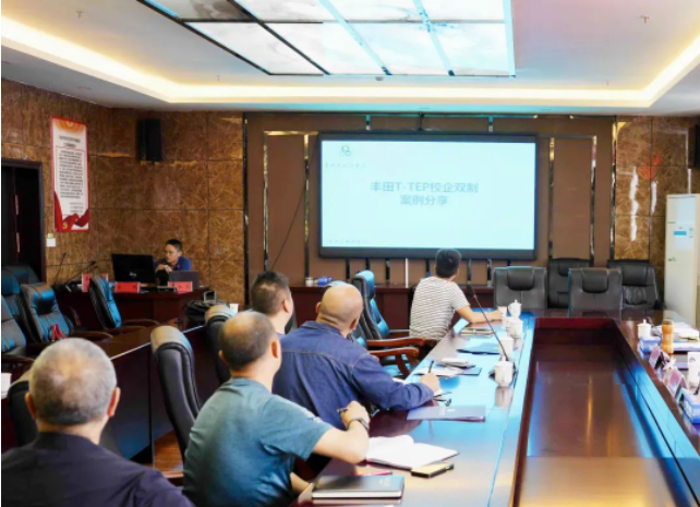 會(huì)上,兩校代表分別介紹了各自基本情況,就人才培養(yǎng)、師資培訓(xùn)、實(shí)訓(xùn)室建設(shè)、合作辦學(xué)、優(yōu)質(zhì)就業(yè)等內(nèi)容開(kāi)展交流座談。 陳鳳貞介紹了廣州市技師學(xué)院的辦學(xué)理念、育人目標(biāo)和專(zhuān)業(yè)特色及亮點(diǎn),分享了開(kāi)展校企合作過(guò)程中積累的經(jīng)驗(yàn)做法,并就相關(guān)專(zhuān)業(yè)的實(shí)訓(xùn)室建設(shè)給出了針對(duì)性意見(jiàn)建議,表示今后將繼續(xù)在人才培養(yǎng)、專(zhuān)業(yè)建設(shè)等方面與我院深入合作交流。 黃瑛表示,今后將繼續(xù)深化校際溝通交流,進(jìn)一步拓展合作深度與廣度,不斷創(chuàng)新合作方式與機(jī)制,實(shí)現(xiàn)優(yōu)質(zhì)資源互利和優(yōu)勢(shì)互補(bǔ),提高學(xué)院辦學(xué)能力和人才培養(yǎng)水平,為學(xué)院發(fā)展注入新的活力。 黃輝鍍就“豐田T-TEP校企雙制案例”及“新能源汽車(chē)檢測(cè)與維修專(zhuān)業(yè)建設(shè)路徑”向與會(huì)教師作交流分享。 學(xué)院參會(huì)教師紛紛表示,通過(guò)此次交流對(duì)專(zhuān)業(yè)建設(shè)有了更進(jìn)一步的思考,對(duì)當(dāng)下行業(yè)發(fā)展現(xiàn)狀、前景及企業(yè)人才需求有了更加深入的了解,為下一步做好人才培養(yǎng)方案修訂、實(shí)訓(xùn)室建設(shè),加快推動(dòng)相關(guān)專(zhuān)業(yè)發(fā)展奠定了堅(jiān)實(shí)的基礎(chǔ)。