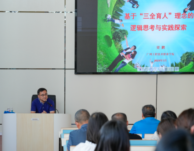 梁鵬在崇德樓階梯教室開展了 “基于‘三全育人’理念的邏輯與思考”的專題講座,分享了廣州工程技術(shù)職業(yè)學(xué)院的辦學(xué)理念、教學(xué)模式、課程設(shè)置以及學(xué)生素質(zhì)培養(yǎng)等方面的經(jīng)驗和成果,為我院教師創(chuàng)新育人理念,探索教育方式提供了新思路。