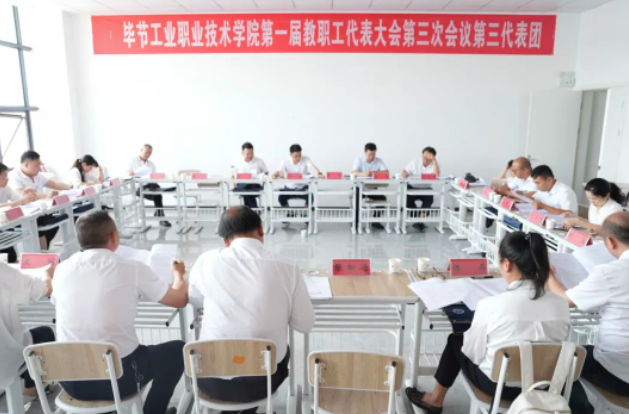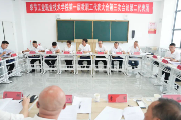 大會還聽取了《畢節(jié)工業(yè)職業(yè)技術學院2022年財務預算執(zhí)行情況和2023年財務預算情況報告》《畢節(jié)工業(yè)職業(yè)技術學院工會工作報告》《畢節(jié)工業(yè)職業(yè)技術學院第一屆第二次教職工代表大會提案落實情況及第一屆第三次教職工代表大會提案征情況報告》,審議了《畢節(jié)工業(yè)職業(yè)技術學院專業(yè)技術職務評聘管理暫行辦法》《畢節(jié)工業(yè)職業(yè)技術學院年度部門綜合考核實施方案》。期間,三個代表團與會代表紛紛以高度的責任感和飽滿的主人翁精神,緊緊圍繞中心工作,對大會相關《報告》《辦法》《方案》及相關《決議(草案)》進行認真討論和審議,提出修改意見和建議,積極為學院發(fā)展建言獻策。