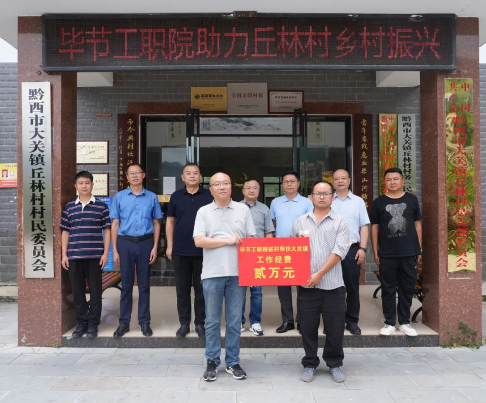 調研組一行實地走訪調研了丘林村紅軍渡口、培訓中心等地,看望學院暑期“三下鄉(xiāng)”赴丘林村社會實踐師生和學院駐村干部,詳細了解大關鎮(zhèn)、丘林村鄉(xiāng)村振興發(fā)展情況,共同謀劃推進鄉(xiāng)村振興具體措施并召開調研座談會。 會上,調研組一行聽取大關鎮(zhèn)和丘林村推進鄉(xiāng)村振興情況,了解發(fā)展規(guī)劃和旅游業(yè)發(fā)展、農特產業(yè)發(fā)展、鄉(xiāng)村治理等方面面臨的困難和問題。 李涌表示,近年來,丘林村在黔西市委市政府、大關鎮(zhèn)黨委政府的領導下,在鄉(xiāng)村建設發(fā)展治理和產業(yè)發(fā)展等方面取得良好成效,發(fā)展迅速。畢節(jié)工職院將充分發(fā)揮自身優(yōu)勢,以打造示范為目的助力丘林村鄉(xiāng)村振興高質量發(fā)展。他強調,丘林村要堅持旅游發(fā)展定位,根據(jù)地方特點發(fā)揮資源優(yōu)勢、創(chuàng)新發(fā)展理念,緊盯發(fā)展目標,充分依托山水自然風光,深挖紅色文化資源,豐富完善旅游線路,提升景區(qū)環(huán)境和服務等級,改善基礎設施,打造特色民宿、特色美食,在鄉(xiāng)村旅游產業(yè)上持續(xù)發(fā)力,走出一條具有時代特征、地域特點的文化旅游與鄉(xiāng)村振興之路;要大力發(fā)展農業(yè)經濟,突出科學種植、改良品種、提高品質,促進經濟林高產優(yōu)質發(fā)展;要充分利用地域及氣候優(yōu)勢,打造季節(jié)經濟作物,發(fā)展季節(jié)特色農產品,同時制定相應政策措施,引進龍頭企業(yè),做優(yōu)做強深加工,打造特色鮮明的旅游特產,全面形成文化、產業(yè)與旅游融合發(fā)展的良好局面。 邱國援介紹了學院情況并表示,丘林村要充分利用當?shù)刭Y源、區(qū)位、文化優(yōu)勢,做好規(guī)劃、設計和管理,全面推進鄉(xiāng)村旅游業(yè)和產業(yè)發(fā)展。下一步,學院將充分發(fā)揮優(yōu)勢,在產業(yè)打造、組織聯(lián)建、產品營銷、人才培養(yǎng)、交流協(xié)作等方面與丘林村形成合力,加大對鄉(xiāng)村人才、技能技術等方面支持,深入開展組織聯(lián)建,助力拓寬鄉(xiāng)村企業(yè)合作銷售渠道,打造特色突出、設施完善的紅色教育基地和學生社會實踐基地,引進企業(yè)參與鄉(xiāng)村振興,為推動鄉(xiāng)村經濟社會發(fā)展提供智力、資源和平臺支持,實現(xiàn)校地互利共贏、共同發(fā)展。 各部門負責人就發(fā)揮職能服務丘林村鄉(xiāng)村振興進行了交流發(fā)言。 會后,學院與丘林村舉行了畢節(jié)工業(yè)職業(yè)技術學院思政實踐教育基地、學生社會實踐基地授牌儀式,并劃撥駐村工作經費2萬元。