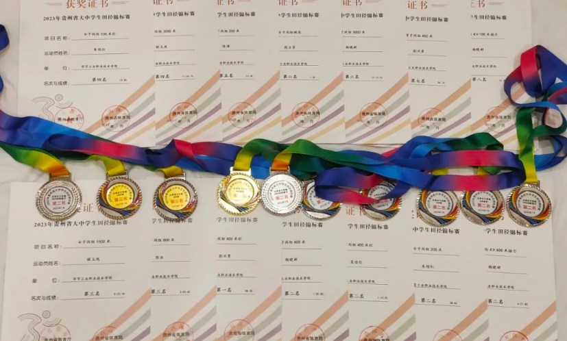 在2023年貴州省大中學(xué)生田徑錦標(biāo)賽中,我院田徑隊在冉光銘、成熊、衛(wèi)平三位教練員的帶領(lǐng)下頑強拼搏、團結(jié)奮戰(zhàn),圓滿完成了各項賽事,共獲得獎牌10枚,其中金牌1枚、銀牌7枚、銅牌2枚,7人次獲得4-8名,2人達國家二級運動員等級,榮獲團體總分第五名。