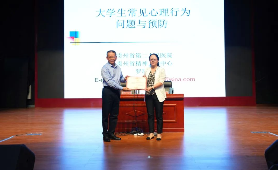 培訓(xùn)會(huì)上,羅環(huán)躍教授圍繞“大學(xué)生常見(jiàn)心理行為問(wèn)題與預(yù)防”主題,從心理行為問(wèn)題與精神疾病的區(qū)分、大學(xué)生常見(jiàn)心理行為問(wèn)題、大學(xué)生心理問(wèn)題的預(yù)防策略三個(gè)方面,對(duì)如何識(shí)別學(xué)生心理問(wèn)題的正常與異常情況、學(xué)生常見(jiàn)心理行為問(wèn)題及產(chǎn)生原因進(jìn)行分析,并就如何構(gòu)建良好家庭關(guān)系和朋輩關(guān)系,著力提升學(xué)生心理健康品質(zhì)等內(nèi)容進(jìn)行重點(diǎn)講解。通俗的語(yǔ)言,豐富的案例,理論與實(shí)踐的有效結(jié)合,現(xiàn)場(chǎng)學(xué)生個(gè)案問(wèn)題處理的交流與互動(dòng),幫助參訓(xùn)教師了解了學(xué)生心理健康知識(shí),提升了服務(wù)學(xué)生心理健康的水平和能力。 會(huì)后,黃文碧代表學(xué)院為羅環(huán)躍頒發(fā)了畢節(jié)工職院心理學(xué)客座教授聘書(shū)。
