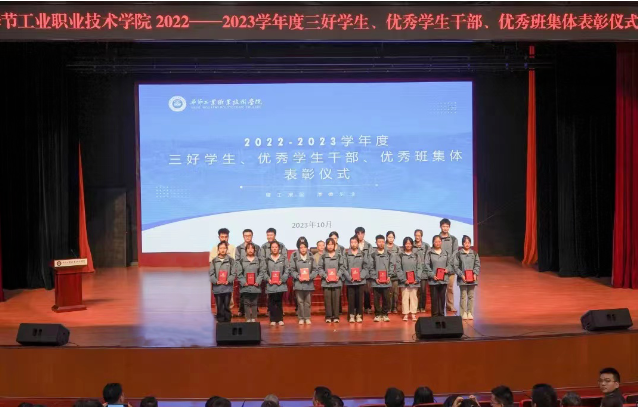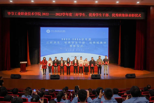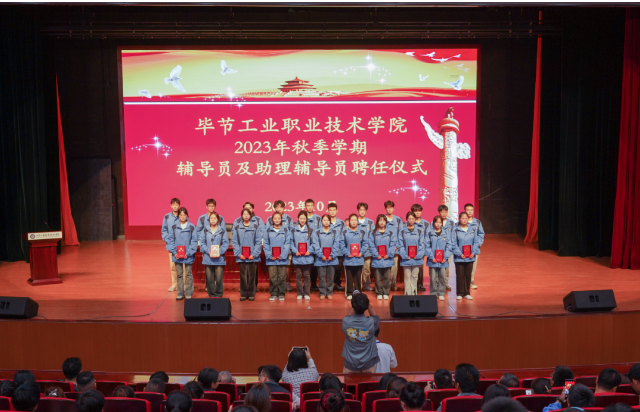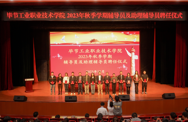 10月19日,畢節(jié)工業(yè)職業(yè)技術學院2022—2023學年度表彰儀式、2023級輔導員及助理輔導員聘任儀式在會議中心舉行。學院黨委副書記付善華,黨委委員、副院長黃河,黨委委員、紀委書記向陽,黨委委員、副院長黃文碧,黨委委員、宣傳統(tǒng)戰(zhàn)部部長余斌出席會議。800余名師生代表參加會議。會議由黃文碧主持。
