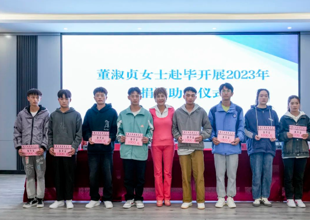 儀式上,董淑貞女士為來自畢節(jié)工業(yè)職業(yè)技術(shù)學(xué)院、赫章縣、黔西市的受助學(xué)生代表發(fā)放助學(xué)金,與同學(xué)們親切交流,結(jié)合自己的經(jīng)歷,用富有哲理的故事為同學(xué)們分享了成長過程中應(yīng)該如何面對困難和壓力,鼓勵同學(xué)們在面對挫折時要滿懷希望、永不放棄、積極行動、持之以恒,并為學(xué)生的職業(yè)發(fā)展、人生規(guī)劃提出切實可行的建議。