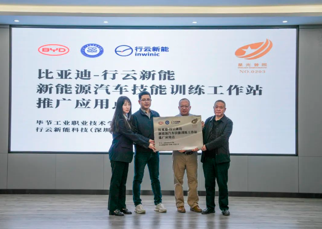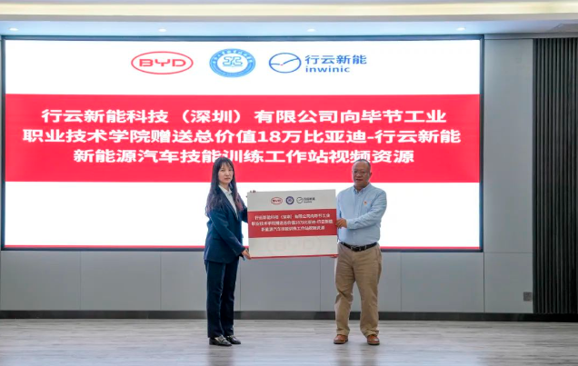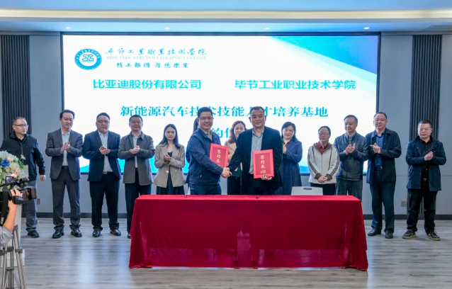 (會議現(xiàn)場) 會上,邱國援介紹了畢節(jié)工業(yè)職業(yè)技術(shù)學(xué)院發(fā)展現(xiàn)狀、辦學(xué)特色、辦學(xué)理念等情況,并指出希望通過發(fā)揮企業(yè)的市場、技術(shù)、設(shè)備等方面優(yōu)勢,共建人才培養(yǎng)基地,為學(xué)院相關(guān)專業(yè)學(xué)生提供優(yōu)質(zhì)技能學(xué)習(xí)條件,進(jìn)一步推動校企合作,深化產(chǎn)教融合,實施人才精準(zhǔn)培養(yǎng)、企業(yè)精準(zhǔn)招聘,促進(jìn)人才鏈與產(chǎn)業(yè)鏈無縫銜接,探索校企合作辦學(xué)模式與運行機(jī)制,創(chuàng)新技術(shù)技能人才培養(yǎng)體系,豐富職業(yè)教育內(nèi)涵建設(shè),進(jìn)一步發(fā)揮職業(yè)教育優(yōu)勢服務(wù)社會、行業(yè)、企業(yè)。 蔣平指出,希望與畢節(jié)工業(yè)職業(yè)技術(shù)學(xué)院在“產(chǎn)、學(xué)、訓(xùn)”等方面密切合作,創(chuàng)新人才培養(yǎng)模式,共同培養(yǎng)更多高素質(zhì)、高技能的應(yīng)用型人才,促進(jìn)共同發(fā)展。 王克靜指出,將在下一步的合作中提供全產(chǎn)業(yè)鏈人才培養(yǎng)生態(tài)系統(tǒng)服務(wù)整體解決方案,與學(xué)院、比亞迪共同開發(fā)課程與教材,優(yōu)化課程體系,搭建“產(chǎn)、學(xué)、研”服務(wù)平臺,推動人才培養(yǎng)模式改革、管理體制機(jī)制創(chuàng)新,助力培養(yǎng)企業(yè)所需的高素質(zhì)技能人才。 (簽約儀式) 基地投入使用后,校企雙方將共同制定人才培養(yǎng)方案,通過企業(yè)工程師入校教學(xué)、教師定崗實習(xí)培訓(xùn),實現(xiàn)教師技術(shù)技能和教學(xué)能力雙提升,利用行業(yè)標(biāo)準(zhǔn)和企業(yè)、社會資源提高專業(yè)建設(shè)標(biāo)準(zhǔn),打造高質(zhì)量行業(yè)人才培養(yǎng)體系,切實提升我院人才培養(yǎng)質(zhì)量和水平。 (揭牌儀式) (授牌儀式) 會上,畢節(jié)工業(yè)職業(yè)技術(shù)學(xué)院還與比亞迪汽車股份有限公司、行云新能科技(深圳)有限公司舉行了簽約、揭牌、授牌儀式及新能源技術(shù)技能工作站捐贈儀式。 (捐贈儀式)
