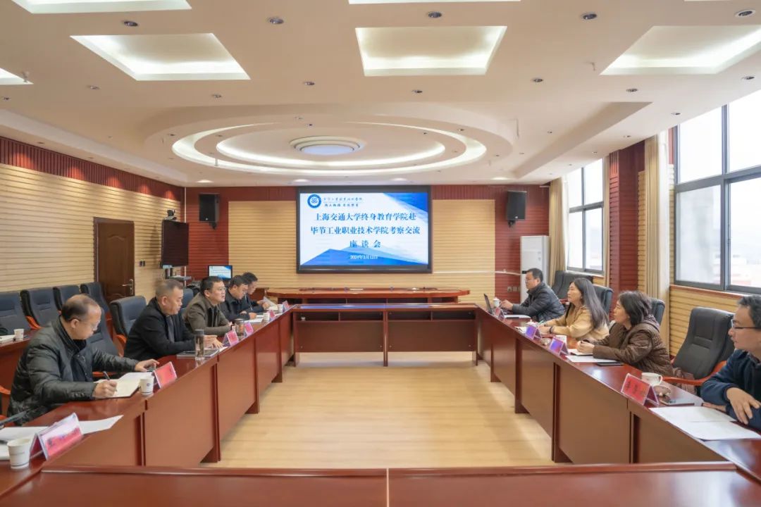 會(huì)上,項(xiàng)玉、吳家文分別就兩校辦學(xué)定位、辦學(xué)特色、校企合作等方面情況作了介紹。 邱國(guó)援在會(huì)上指出,此次合作交流是我院立足畢節(jié)政策、資源、人口三大優(yōu)勢(shì),推動(dòng)畢節(jié)市工業(yè)大突破的戰(zhàn)略人才儲(chǔ)備和專業(yè)需求的務(wù)實(shí)舉措,希望借助上海交通大學(xué)終身教育學(xué)院的辦學(xué)優(yōu)勢(shì),多方面開展廣泛合作,增強(qiáng)雙方在師資、教學(xué)等方面的交流,在東西部協(xié)作、人才培養(yǎng)等方面實(shí)現(xiàn)優(yōu)勢(shì)互補(bǔ),促進(jìn)兩校高質(zhì)量發(fā)展。 項(xiàng)玉表示,希望兩校進(jìn)一步加強(qiáng)合作交流,共同提高人才培養(yǎng)水平,完善人才培養(yǎng)機(jī)制,提高勞動(dòng)人口綜合素質(zhì),在人才培養(yǎng)、科技創(chuàng)新、平臺(tái)建設(shè)等方面進(jìn)一步創(chuàng)新合作模式、拓展合作領(lǐng)域、擴(kuò)大合作成效,共同打造校校合作示范標(biāo)桿。 會(huì)上,上海交通大學(xué)終身教育學(xué)院有關(guān)負(fù)責(zé)同志分享了辦學(xué)經(jīng)驗(yàn)和成功案例,參會(huì)人員就合作具體事項(xiàng)進(jìn)行深入溝通。 會(huì)前,上海交通大學(xué)終身教育學(xué)院副院長(zhǎng)項(xiàng)玉一行實(shí)地參觀了學(xué)院辦學(xué)及實(shí)訓(xùn)條件。